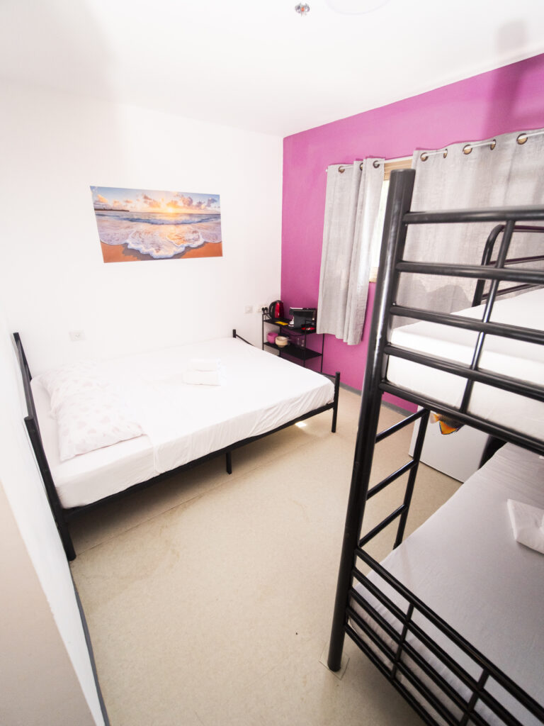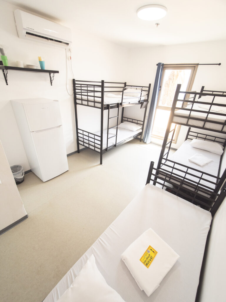 פשוטה ונעימה: * מיטות קומותיים, מקרר,עד 5 בחדר * מופרד בנים לבנות * מטבחון , כיור, קומקום, מיקרוגל וטוסטר אובן * שירותים ומקלחות משותפים * מצעים כלולים